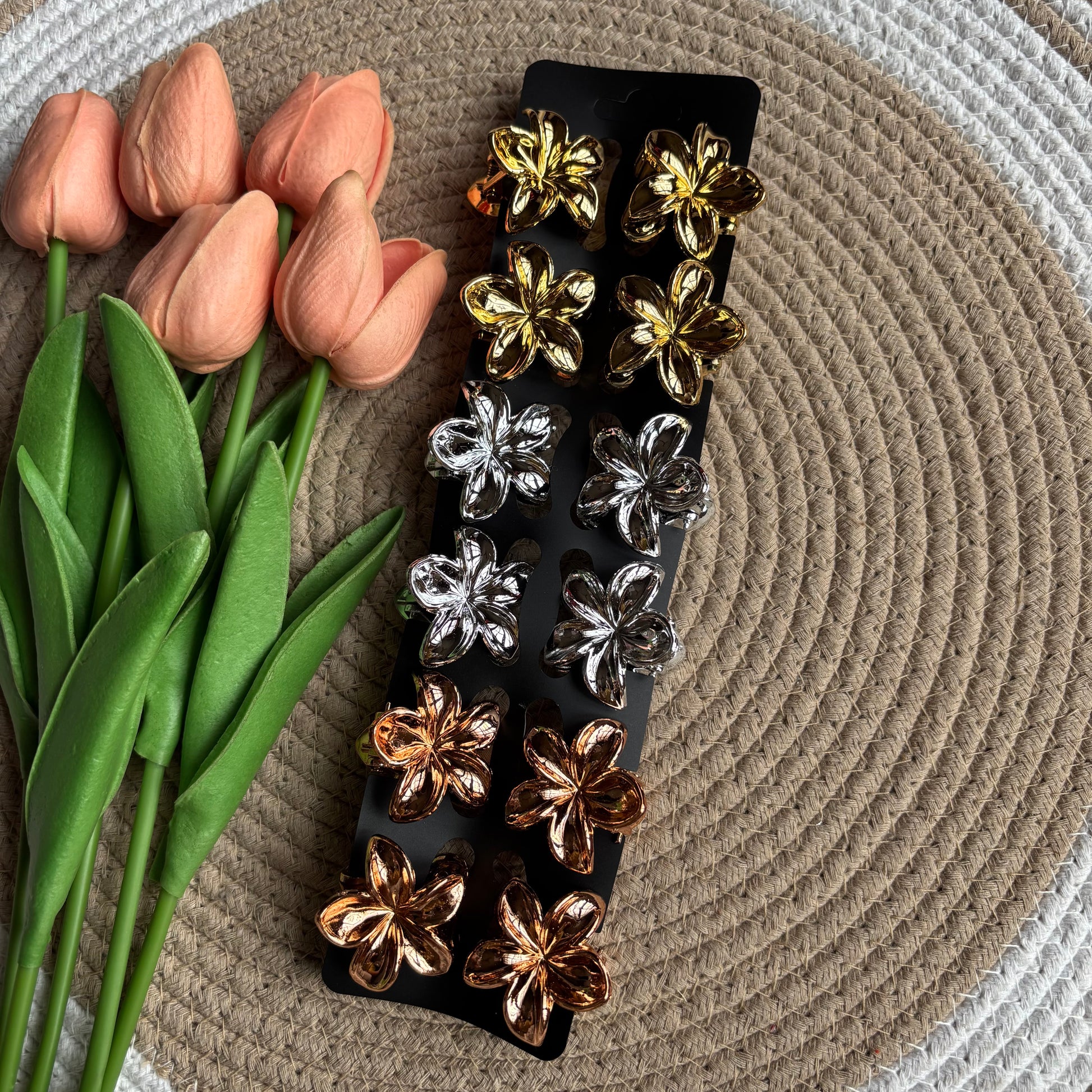 Metallic Shiny Flower Claws (12 Pieces)