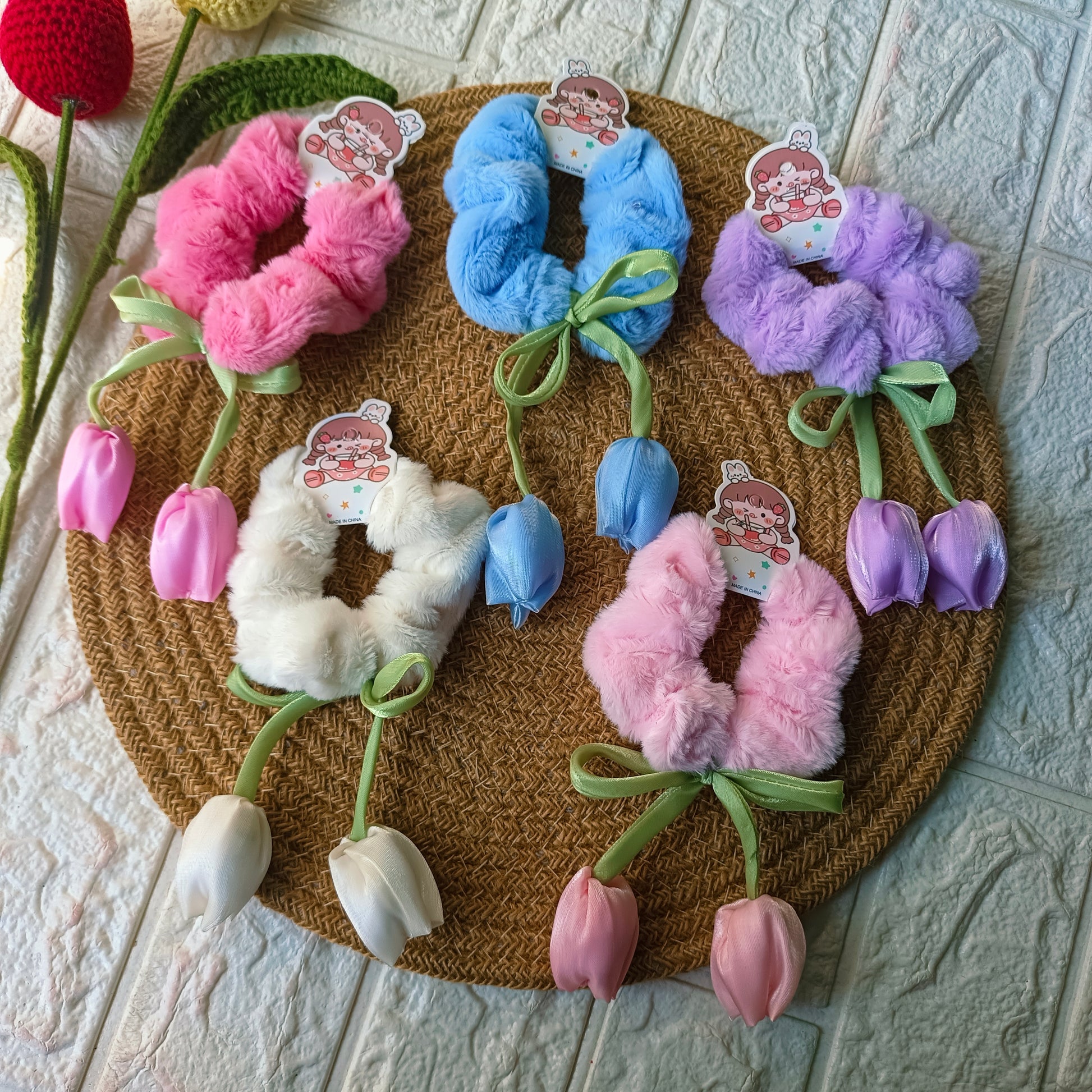 Premium Fur tulips Scrunchies (6 Pieces)